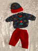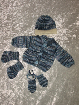 Alle gestrickten Sets sind aus hochwertigen Garnen, die waschmaschinenfest sind. In der Regel verwende ich Sockenwolle, die filzfrei, strapazierfähig und formstabil ist. Die Hosen sind aus verschieden dicken