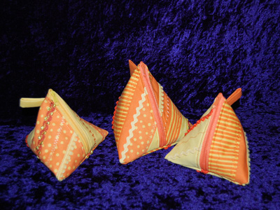Das Set beinhaltet 1 Pyramidentäschen mit ca. 14,5cm Höhe und 2 Pyramidentäschchen mit ca. 12,5cm Höhe.